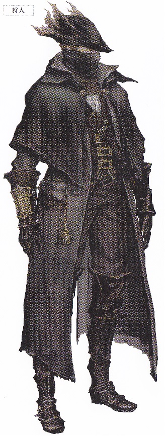 | 教会の特殊医療者の装束 彼らは、黒い予防の狩人たちの上位であり 実験に裏打ちされた、血の医療と、獣の病の専門家である 彼らにとって医療とは、治療の業ではなく、探求の手段なのだ 病に触れることでしか、開けない知見があるものだ |